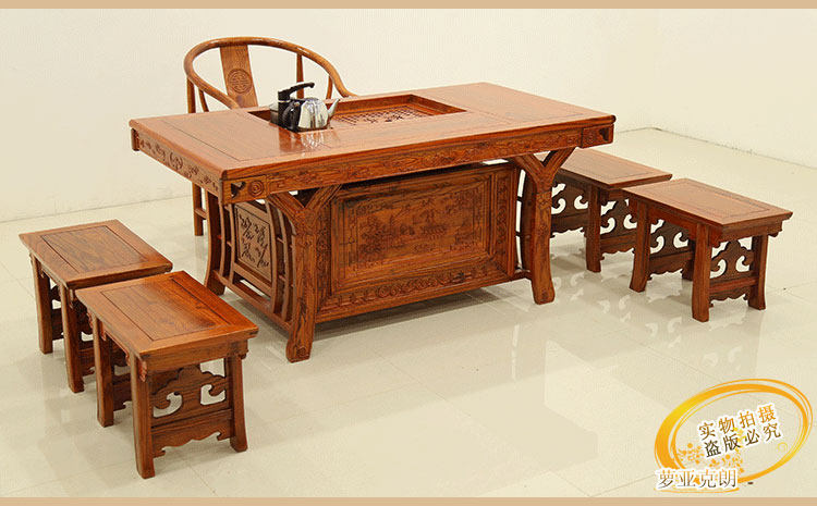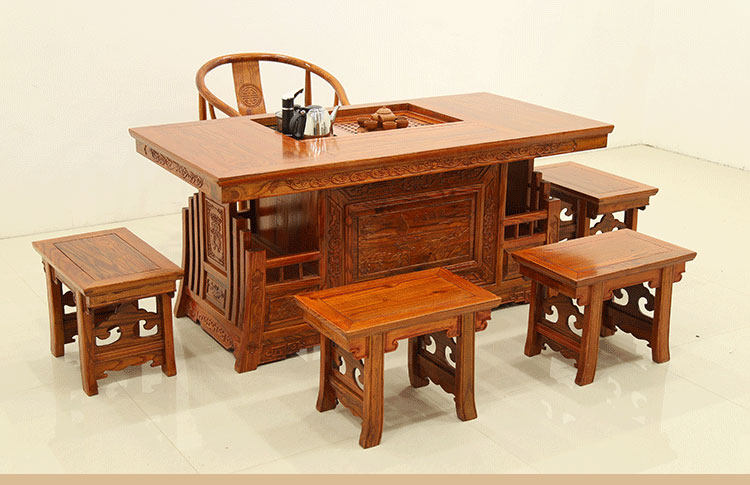 Warring States General Taiwan Tea Table Tea Room Kung Fu Tea Table and Chair Combination Antique Chinese Elm All Solid Wood Tea Table Tea Ceremony Table