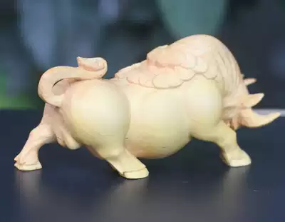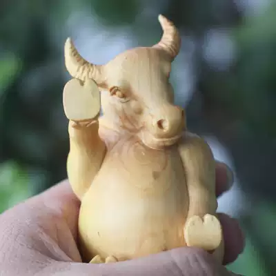 Yueqing boxwood carving money Ruyi cow handle play piece Feng Shui decoration Fortune such as rainbow taurus