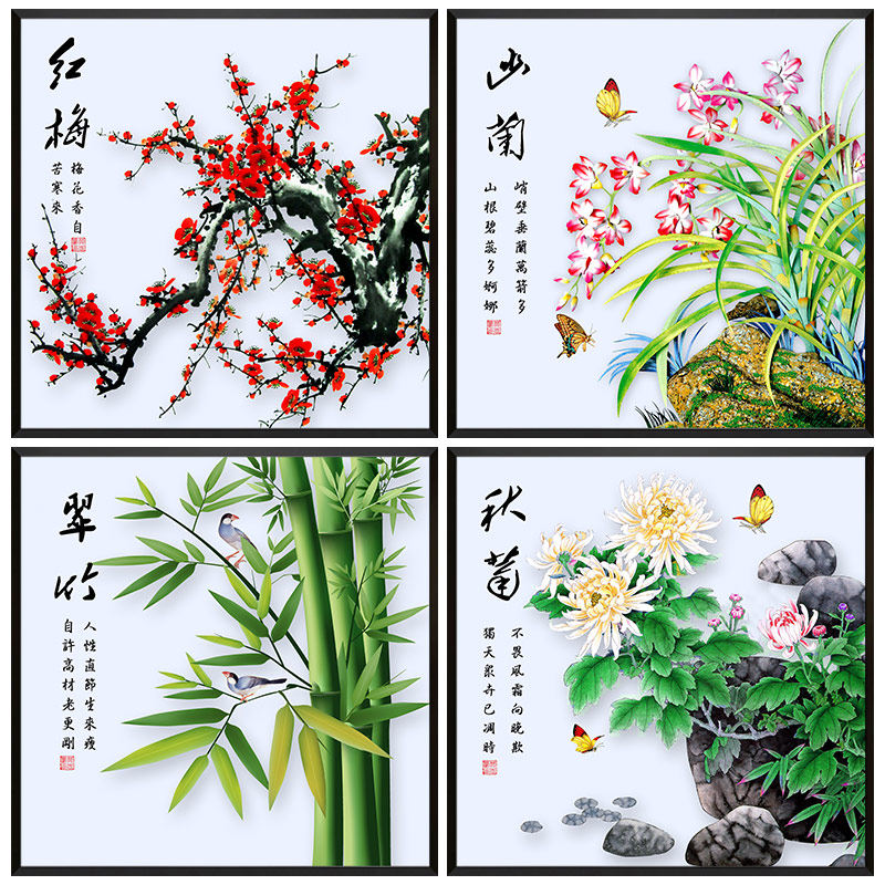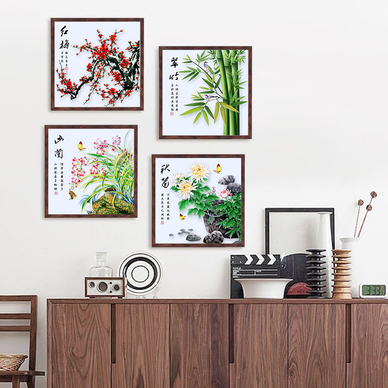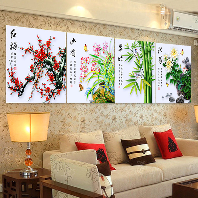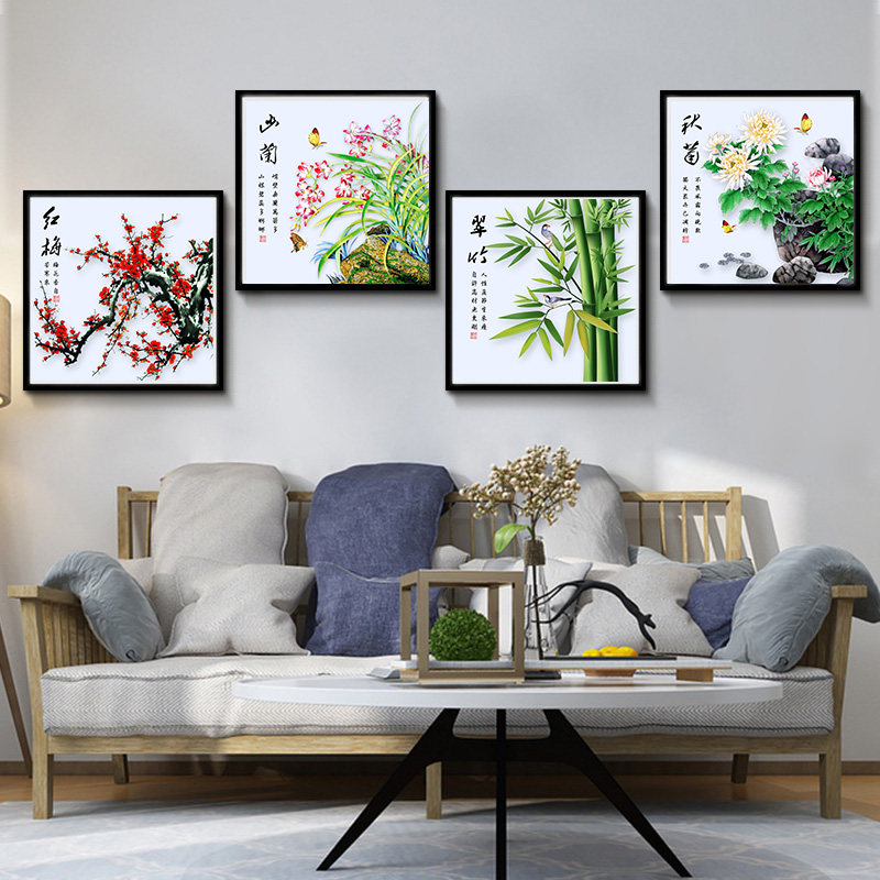 Printing cross embroidery Melan Bamboo Mother New Quadrift Cross Embroidery Flower Graphics Living Room Simple Modern View Paintings