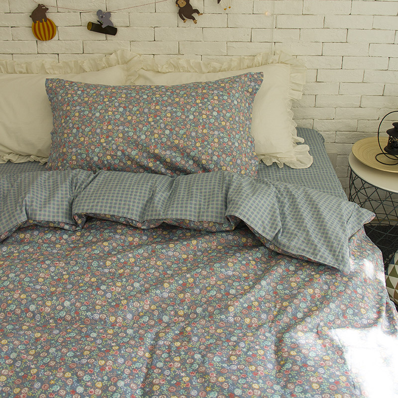 (Home Pose) Han edition Little Broken Flowers Dormitory Three Sets Bed Uni Art School Students Pure Cotton Bed BJ