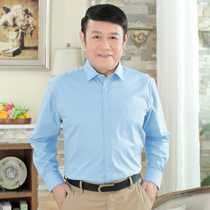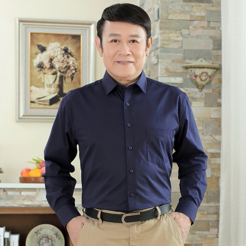 Middle-aged and elderly men's long-sleeved shirts 40-50 years old spring and summer father's cotton shirts middle-aged men's cotton thin shirts