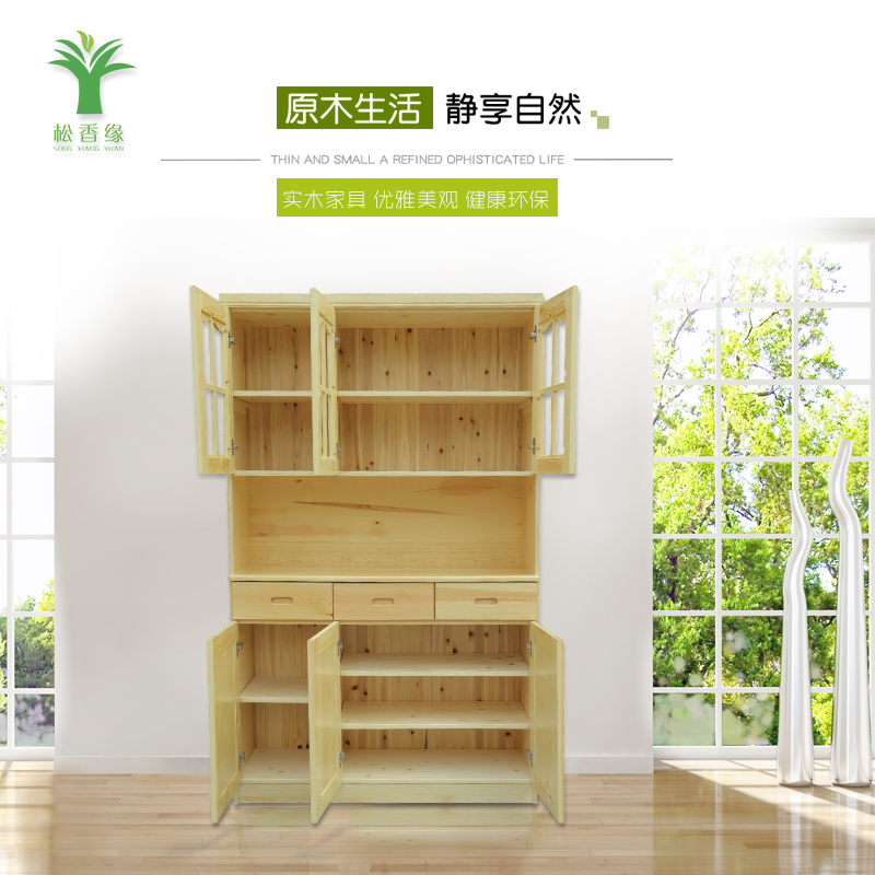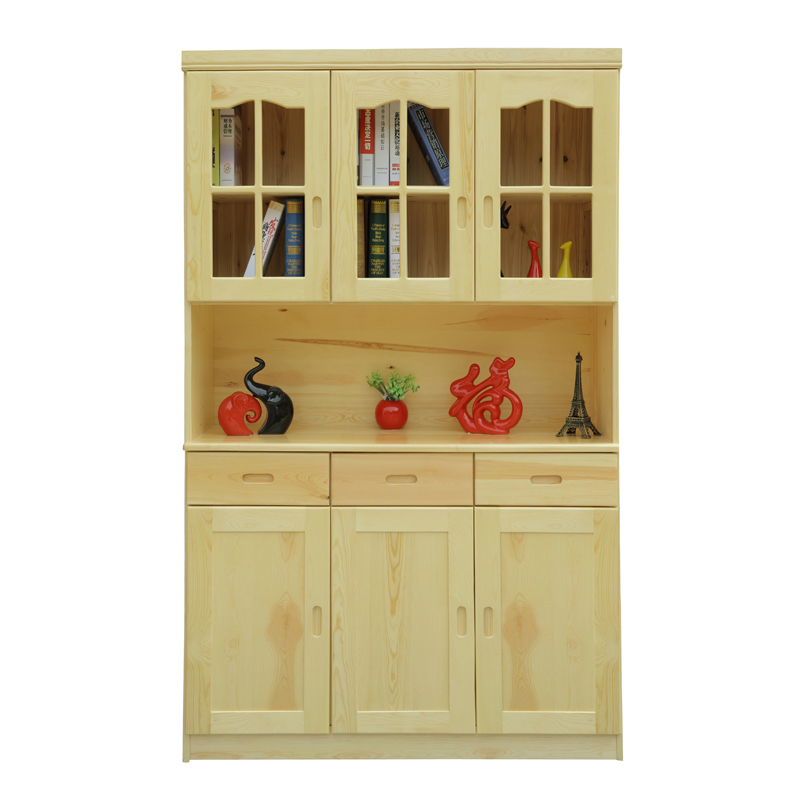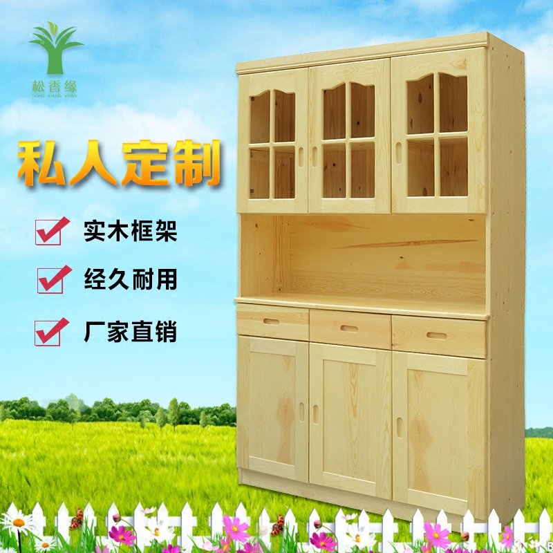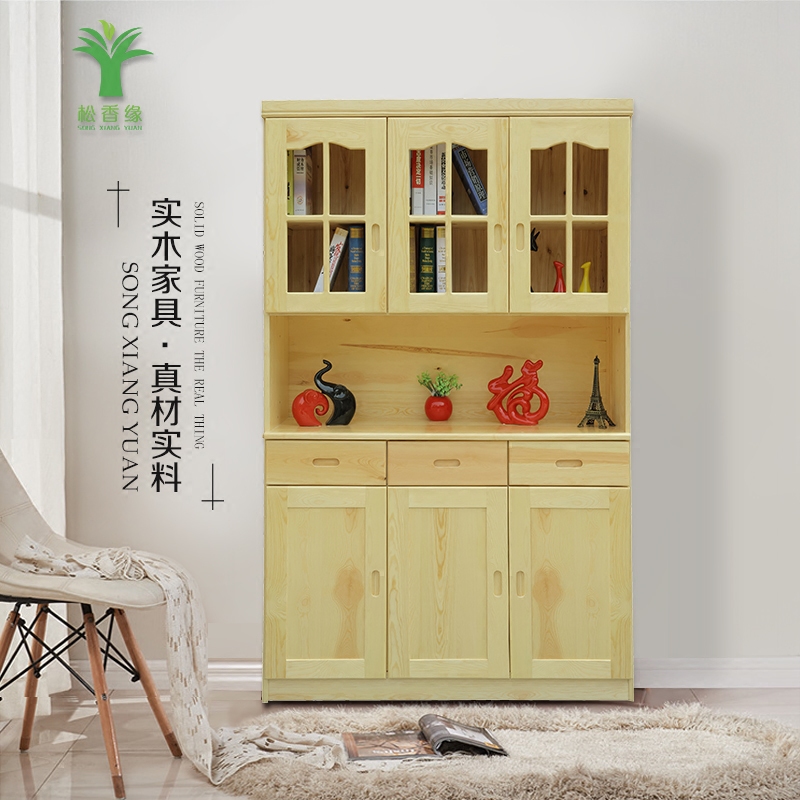 Full solid wood dining cabinet Custom Guangzhou eco-friendly pine wood furniture Microwave Oven Oven Cabinet Storage Drawer Wine Cabinet
