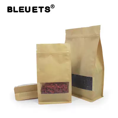 20 14*24 6cm Kraft paper eight sides closed window self-standing bag food coffee bag sealed bag organ bag
