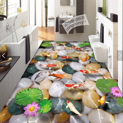 3D floor tiles powder room balcony tiles living room kitchen bedroom aisle three-dimensional flower pond carp floor tiles background tiles