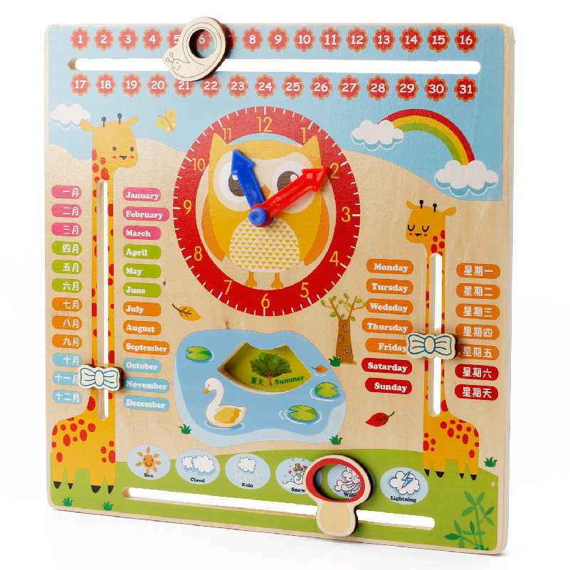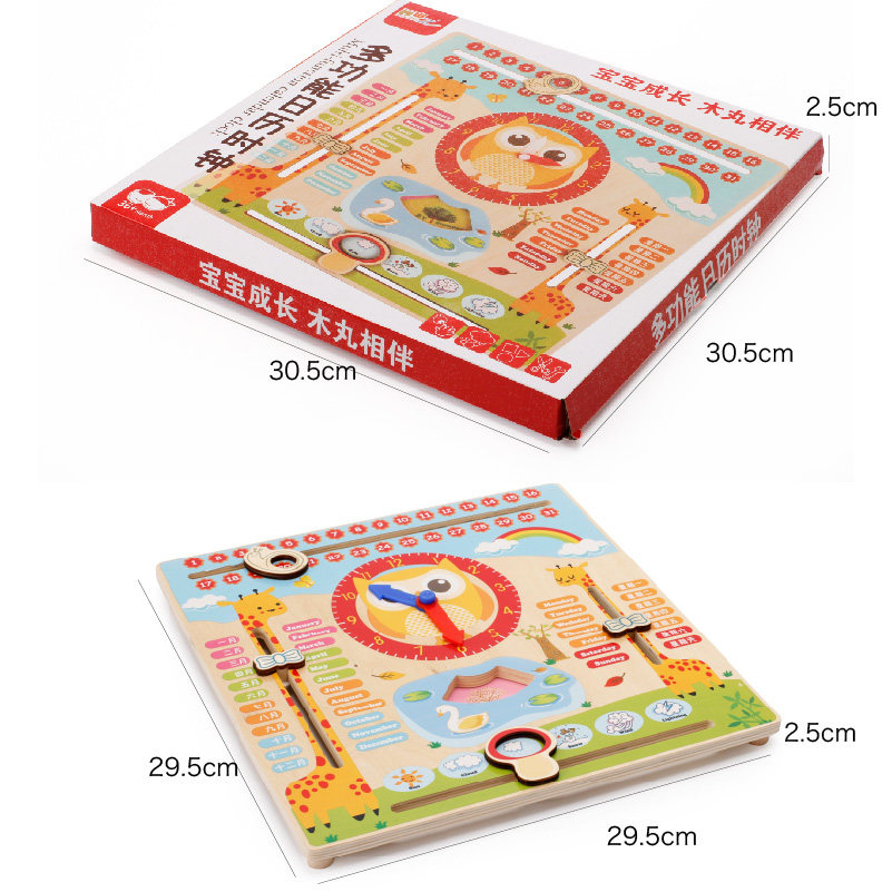 Children's wooden multi-functional early education puzzle calendar clock cognitive boy and girl baby 1-3-6 years old building block toys