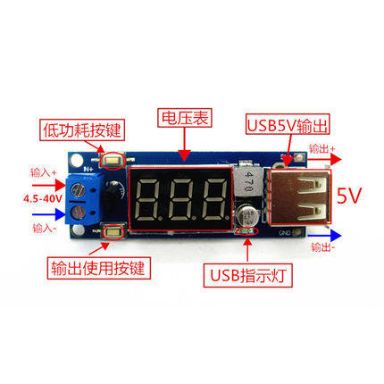 DC-DC step-down power module 6 5v12V ~ 40V turn 5V on-board voltmeter mobile phone USB charging