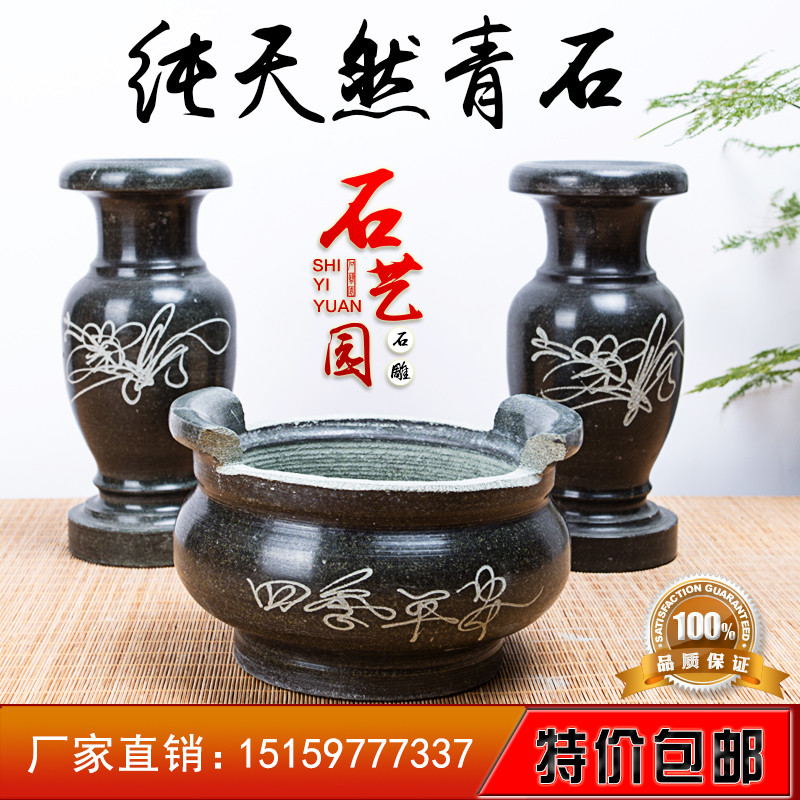 Stone Incense Stove Sacrificial graveyard Vase Wax Candle Holder Marble Green Stone Carved Stone Carved Small Round Temple Graveyard wax table Large number