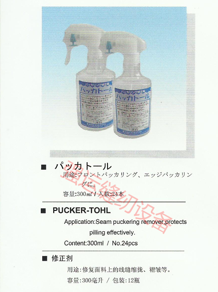 Remove wrinkle spray PUCKER-TOHL modifier repair seam shrinkage on fabric, wrinkle removal, etc.
