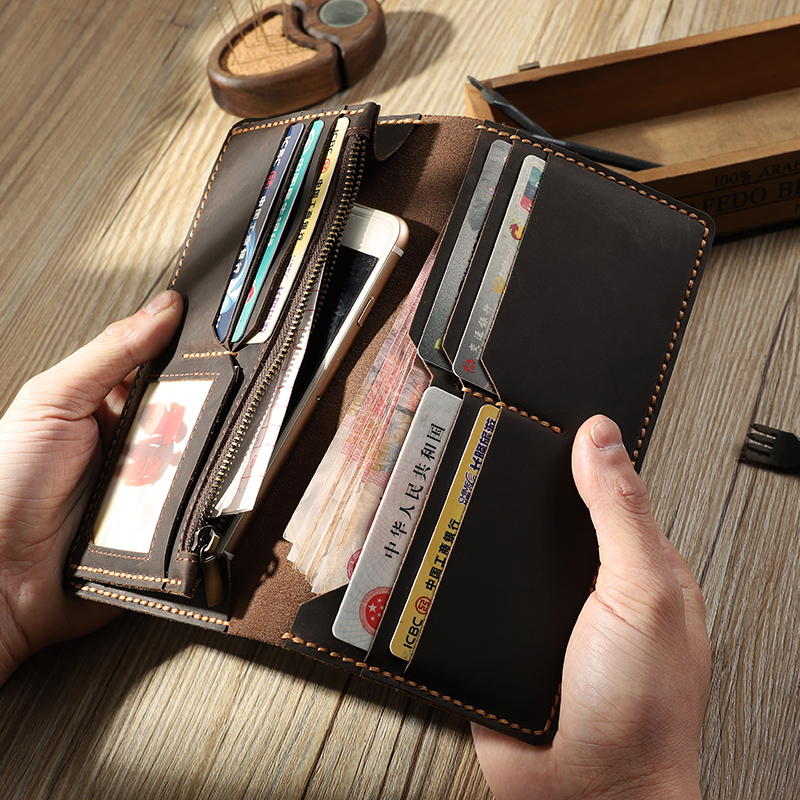 Manual Wallet Men's Style Long Version Japan-ROK Youth Money Clip Genuine Leather Head Layer Cow Leather Retro Wallet DIY Material Bag