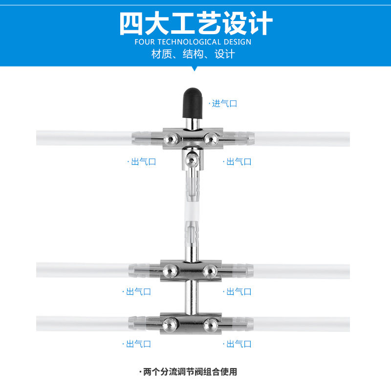 Double-mouth triage valve (adjustable gas flow with choke plug) Three-outlet shunt valve (adjustable gas flow with choke plug) Four-outlet shunt valve (adjustable gas flow with choke plug)