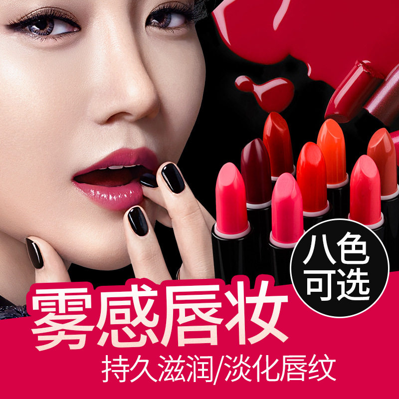 Extremely dense pure color lipstick dilutes lip lines lipstick moisturizing smooth moisturizing plump velvet texture 8 colors waterproof and sweatproof