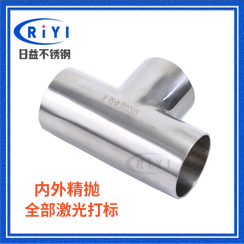 304 Health grade stainless steel welding tee food-grade mirror and equal diameter isodiamettee polished 38 51 2 inches