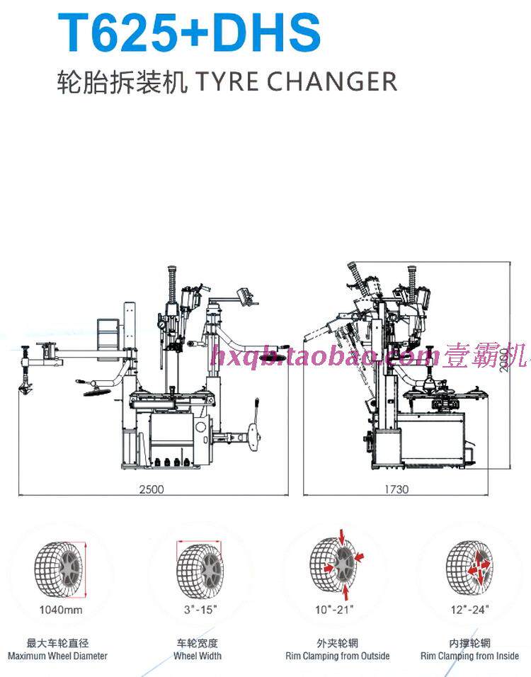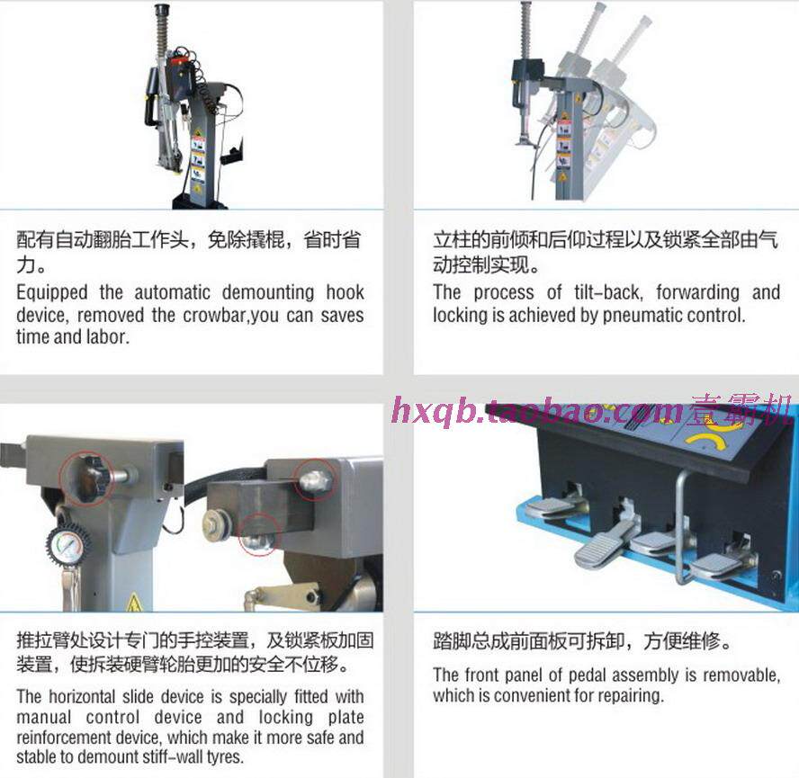 Shanghai Baisei Tuo Tyre Dismantling Machine Tire Unloader Double Assist Arm Flipping Bird Head Automatic Hook T625 DHS
