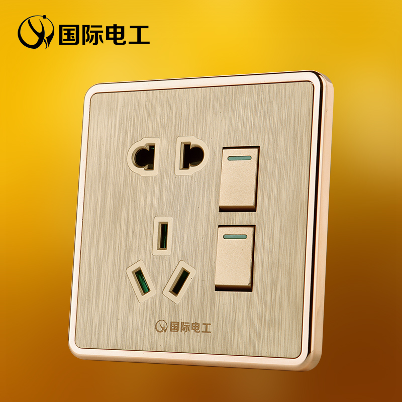 International Electrician Two open five holes Two open double cut with two three-hole power supply Type 86 dark champagne gold pull