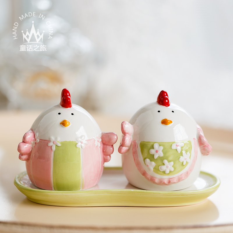 Creative ceramic crafts Kitchen decorations Hen seasoning pot Salt and pepper salt box Chicken seasoning bottle set