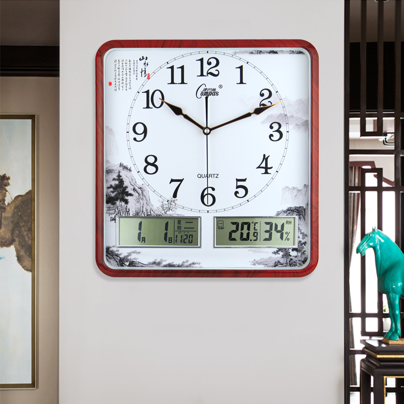 Combas Clock Electronic Wall Clock New Chinese Style Living Room Creative Rectangular Perpetual Calendar Chinese Style Mute Clock
