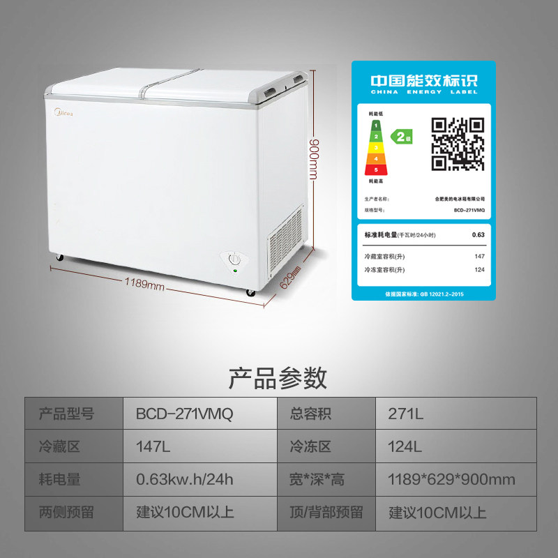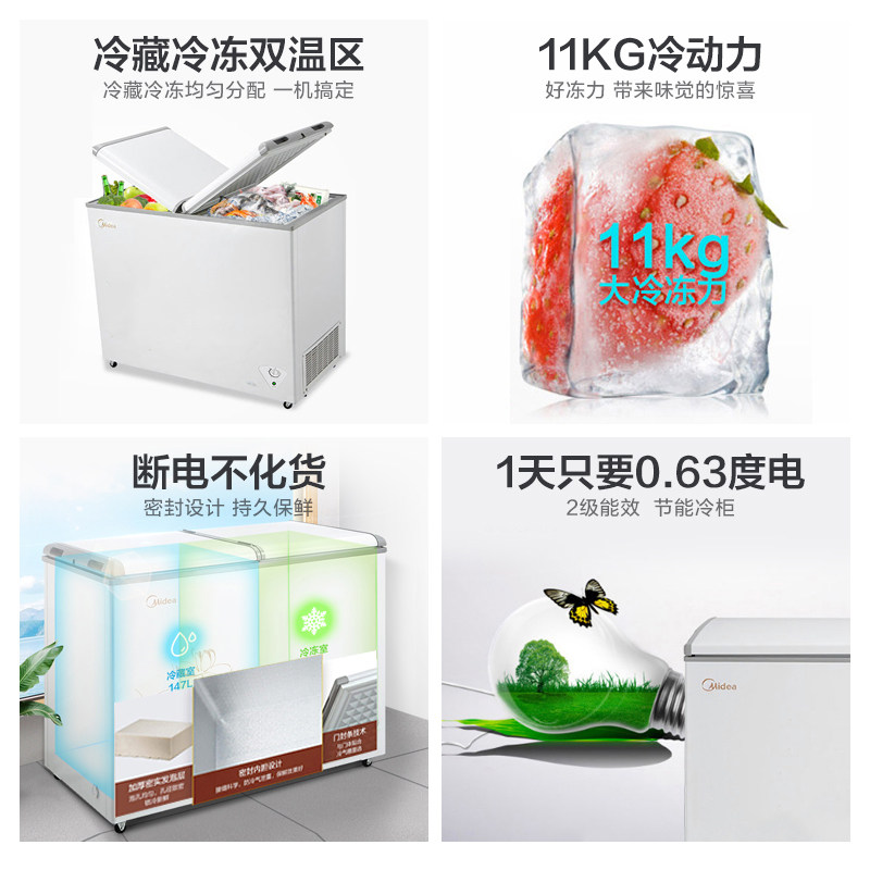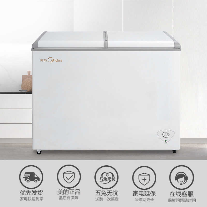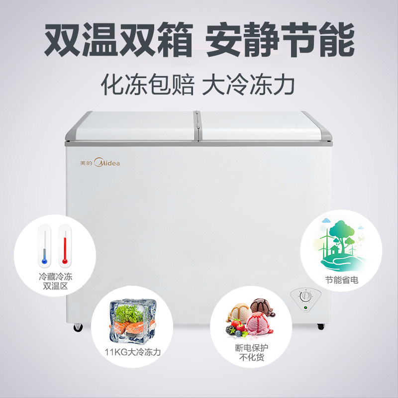 Midea 271 liters freezer double temperature double door large capacity refrigeration and freezing dual-use household commercial horizontal ice cream freezer