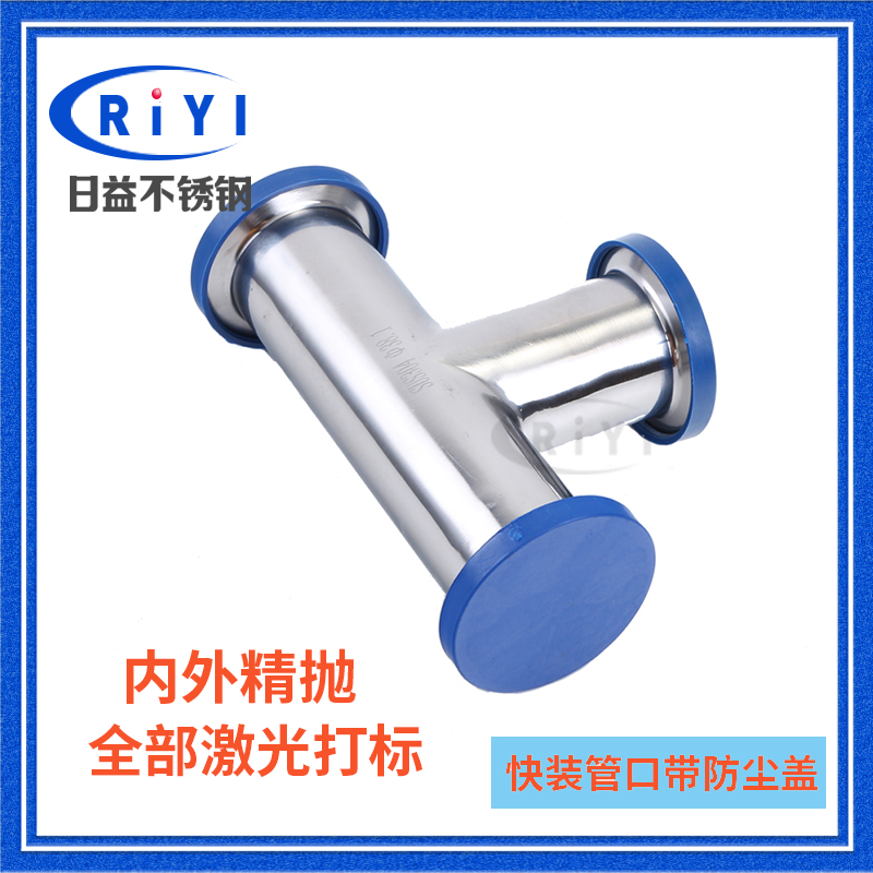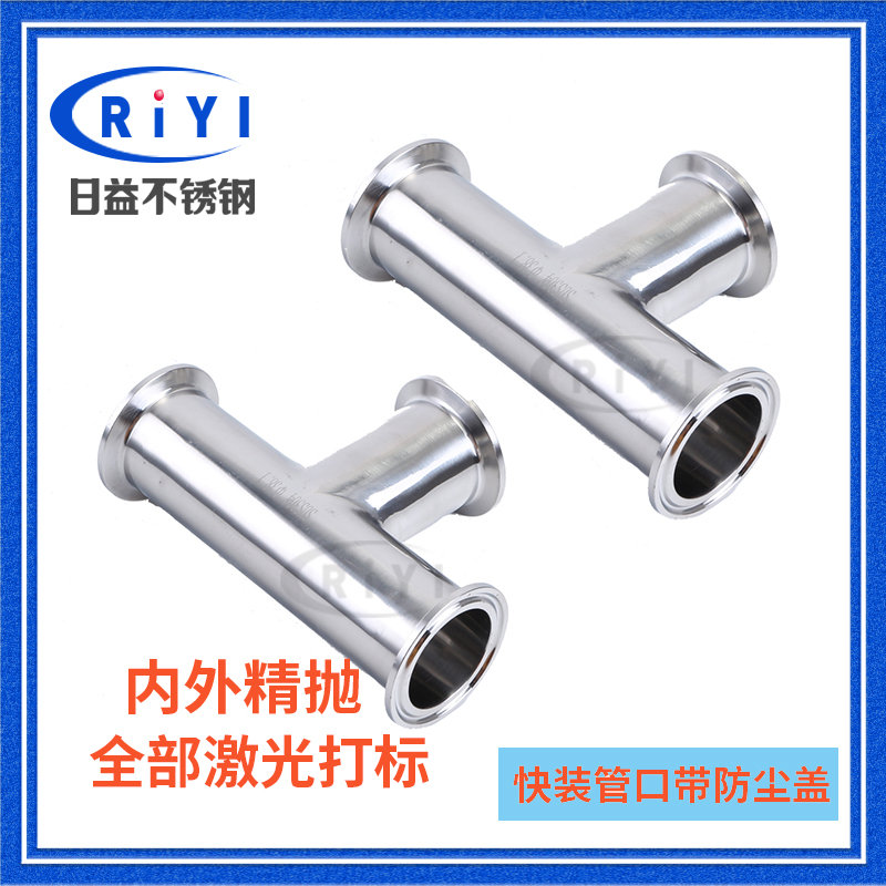 304 Sanitary grade food grade stainless steel mirror polished quick-fit tee Clamp type quick-connect 90 degree equal diameter tee