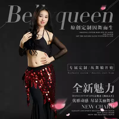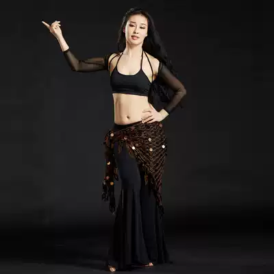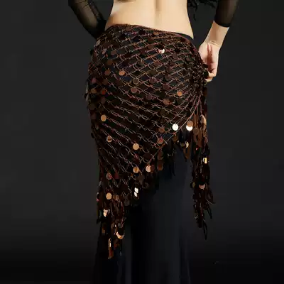 Dancer belly dance waist hip towel new fishing net sequin triangle towel Gong piece tassel belt waist towel
