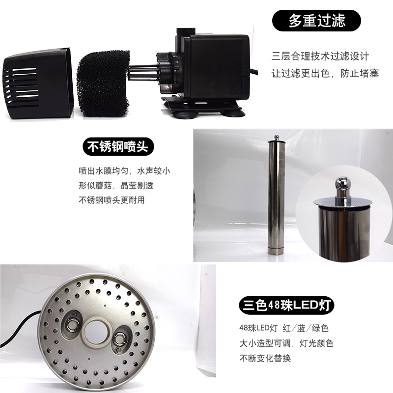 Pool landscape atomization mushroom fountain pump oxygen with LED light small submersible pump fish pond circulating rockery