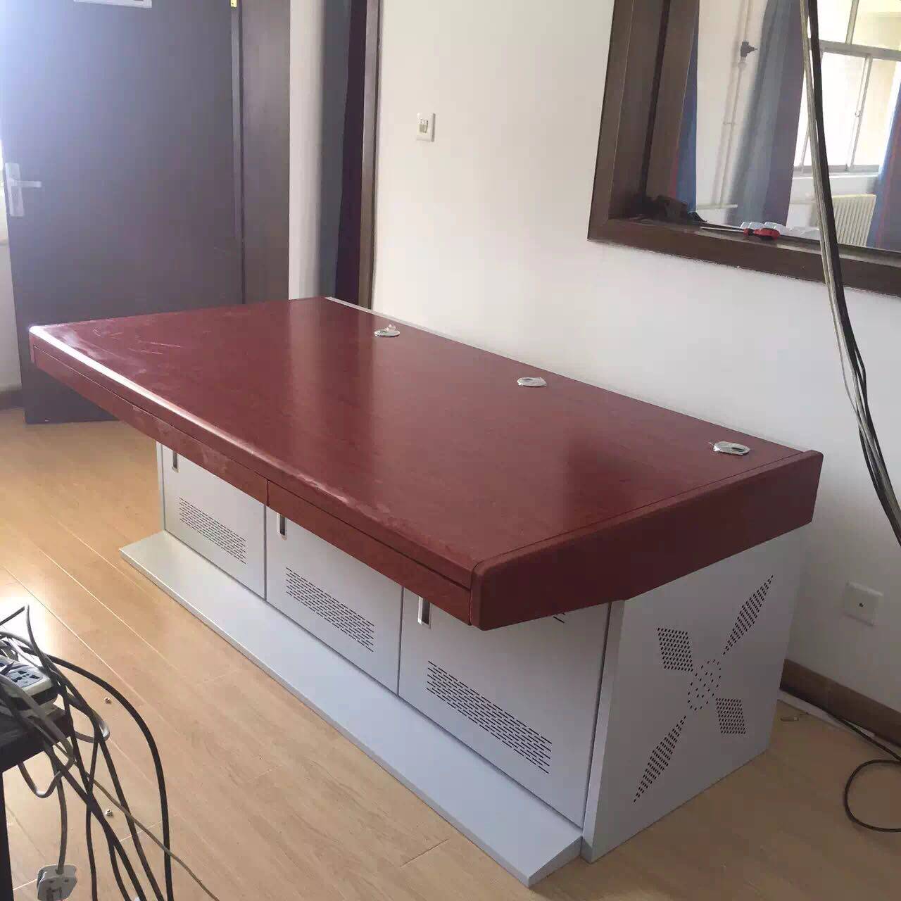 Xi'an Enclosure Manufacturer Luxury Wood Surface Spray Painting Operation Table 3 United Three Station Monitoring Desk Double Affiliate Monitoring Desk