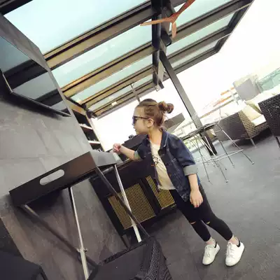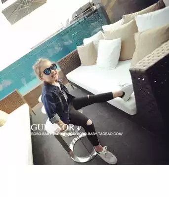 Children's clothing girls Autumn New Korean version of children's hole knee pipe pants ankle-length pants pants long pants 0230