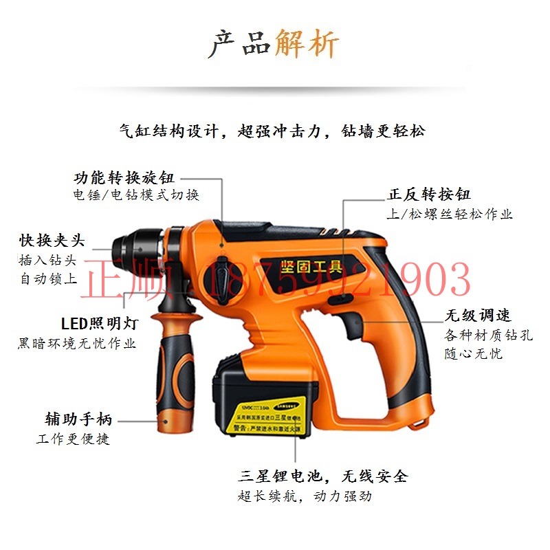 Strong 12V lithium electric hammer KD65-10 stepless variable speed wireless impact drill charging hammer drill electric drill electric screwdriver