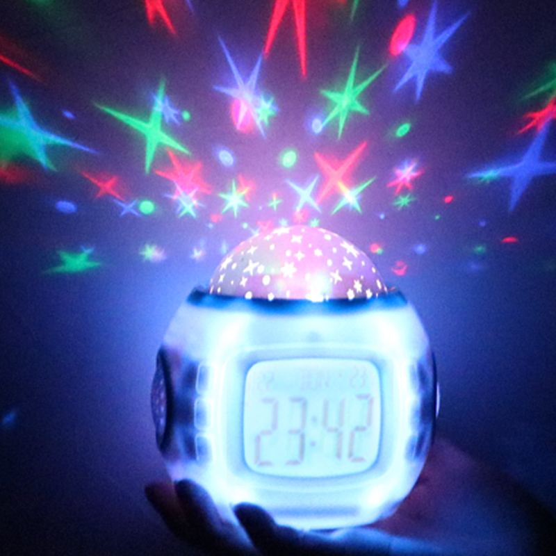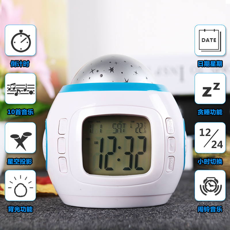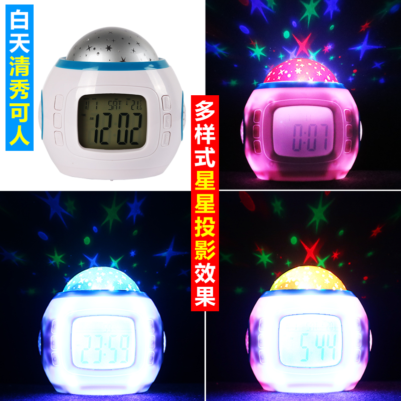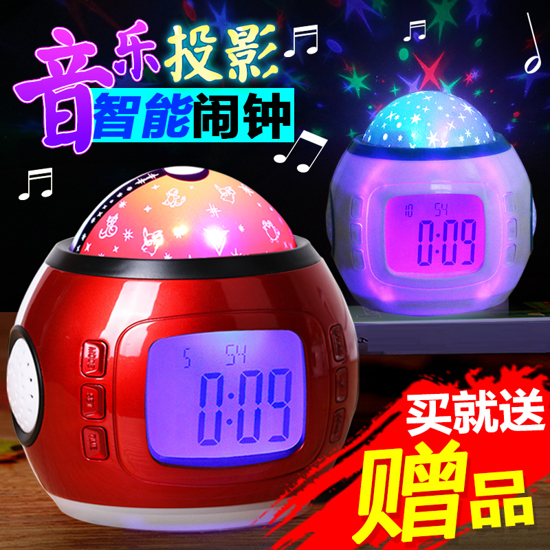 Projection bell music electronic alarm clock creative students cute personality multi-function night light silence bedroom children