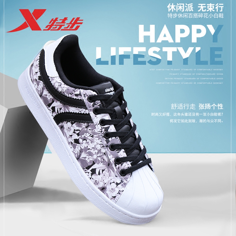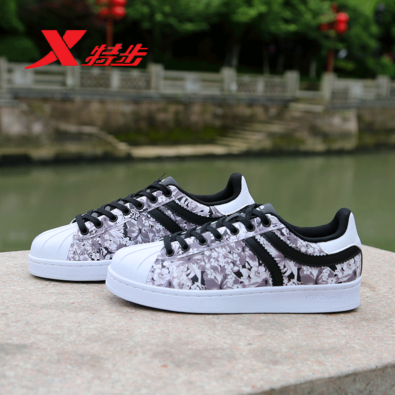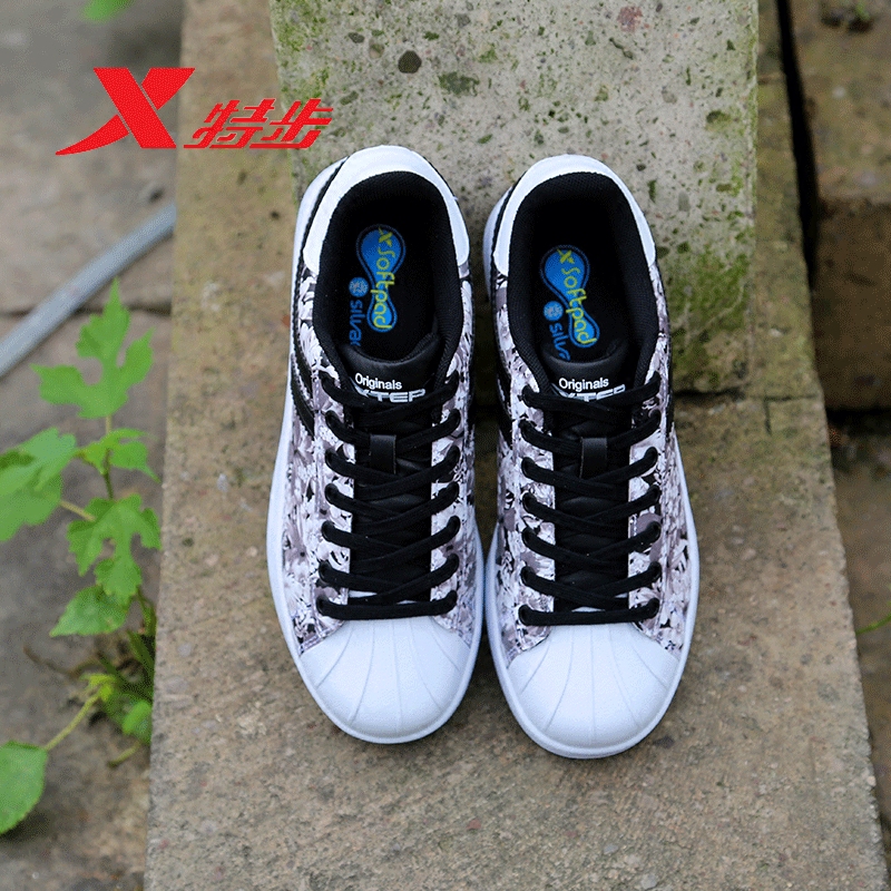 Xtep sports shoes women's shoes ladies casual shoes student shoes shell toe low top camouflage printed sneakers