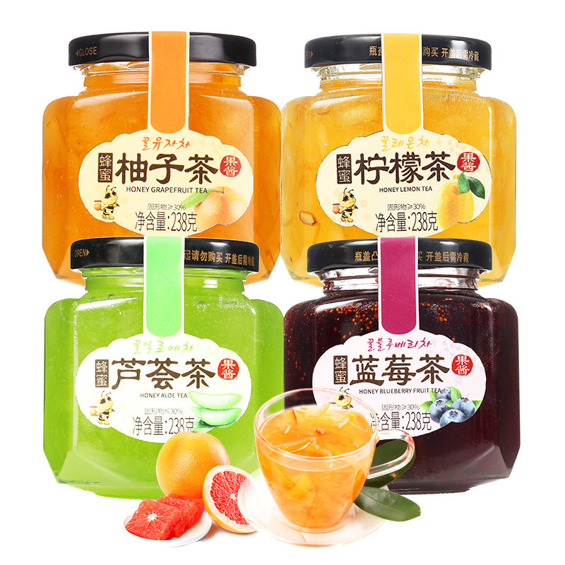 (Send Steel Spoon) Flower Saint Honey Grapefruit tea Lemon Aloe Vera Blueberry 238g * 4 Bottles Rinderless drinks Pot jam