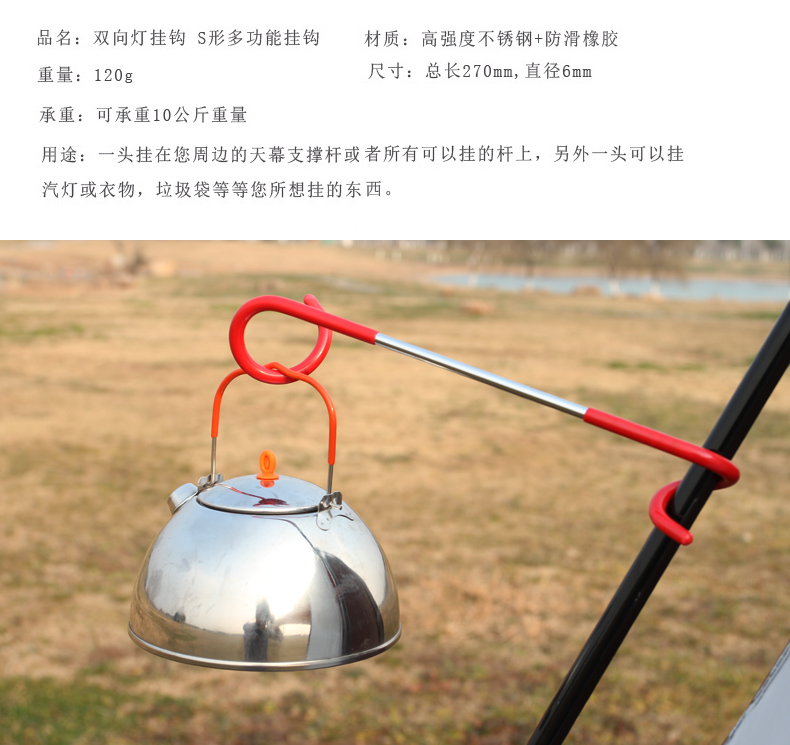 Outdoor camping multi-function steam lamp hook tent lamp double-headed S-type pylons two-way universal hanging is very practical