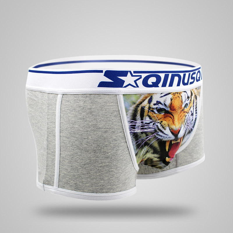 Tide men's underwear quadruple trousers Young 3D tiger head pattern cotton low waist sexy four - corner strip