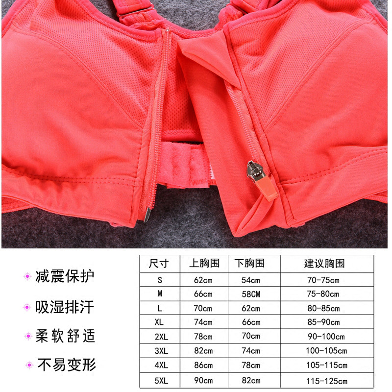 Extra large size shockproof front zipper sports bra women's no steel ring yoga clothing fitness tube top plus fertilizer plus 200 catties