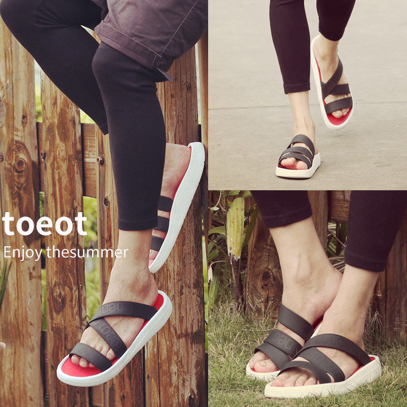Korea Toeot Sandals Men's and Women's Summer Travel Slippers Thick Sole Couples Travel Vacation Beach Sandals