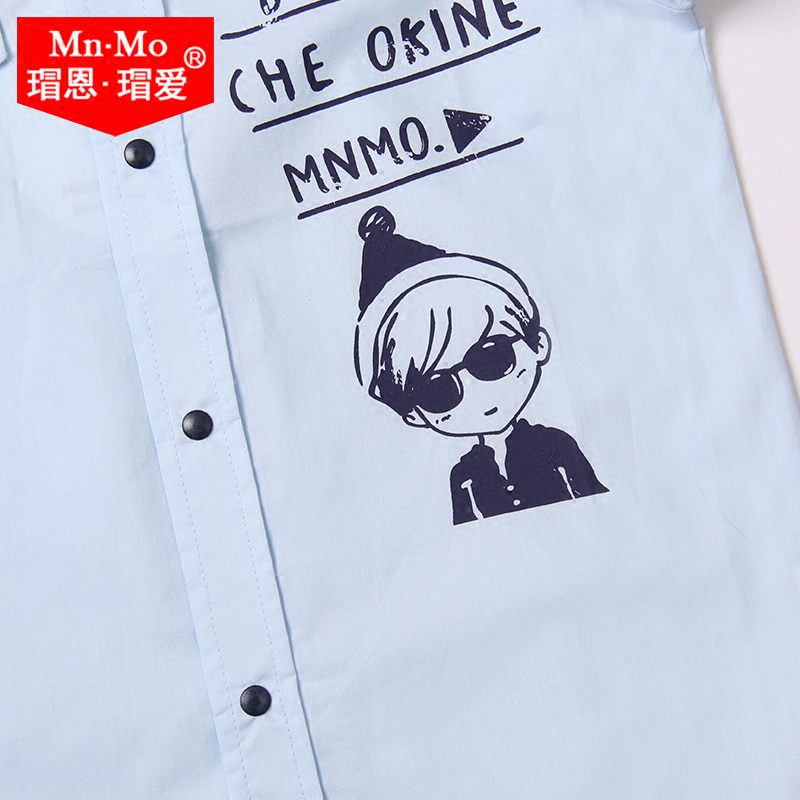 Bo En Bo Love Boys cotton shirt short-sleeved summer thin section middle and large children's Foreign school lapel Korean version of the children's top tide