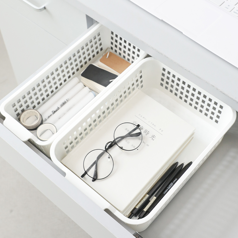 Leave white hole Hole Basket with Cosmetic Containing Basket Dorm Room Table Rectangular Zero Food Plastic Bathing Basket