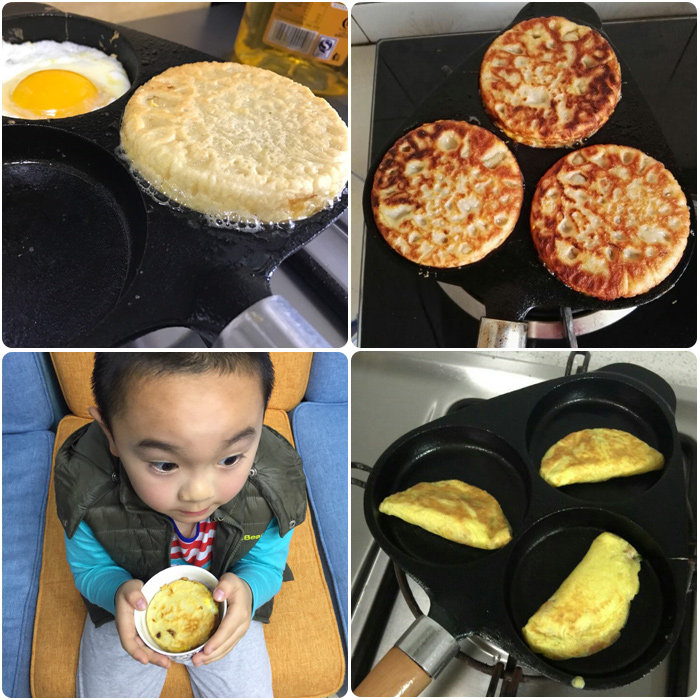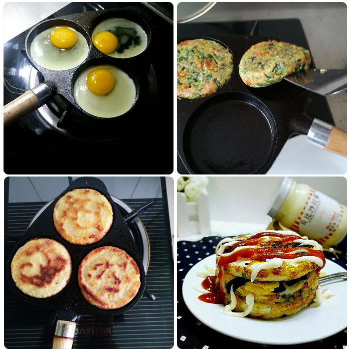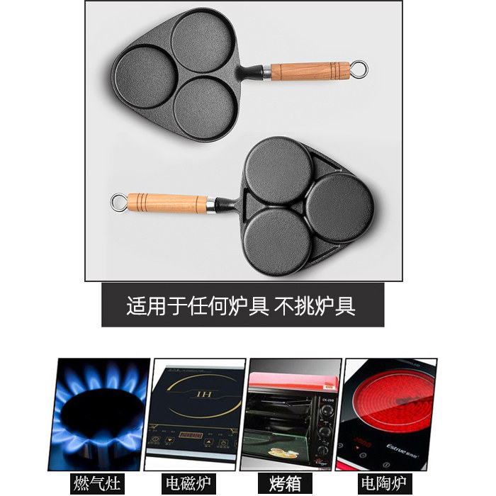 Cast iron three-hole egg dumplings without coating non-stick flat bottom pan deepen eggs burger molds frying egg pan induction cookers-Taobao