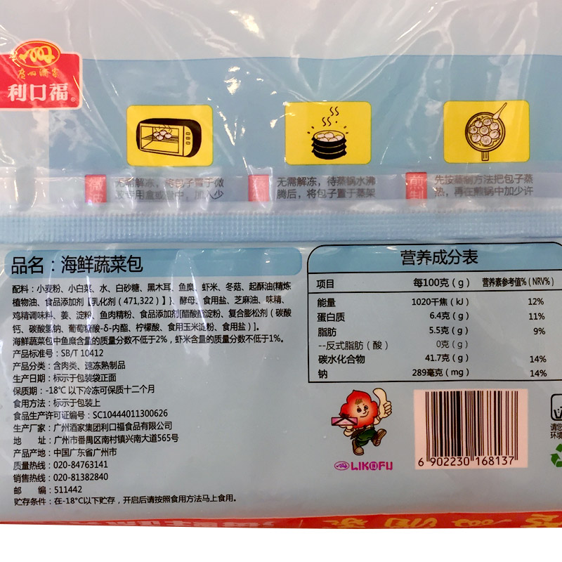 Guangzhou Restaurant seafood and vegetable bags 2 bags of convenient instant breakfast bread buns Cantonese morning tea snacks 450g*2