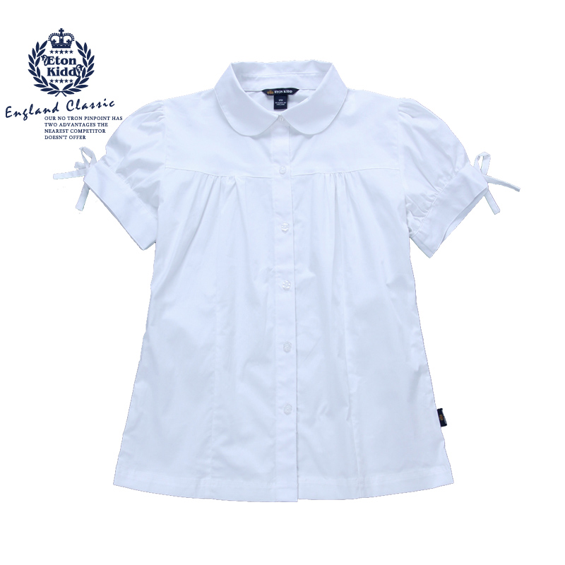 Eaton Gide primary and secondary school school uniform girls white short-sleeved shirt bow cuffs round neck summer 09C226