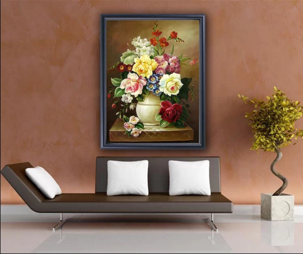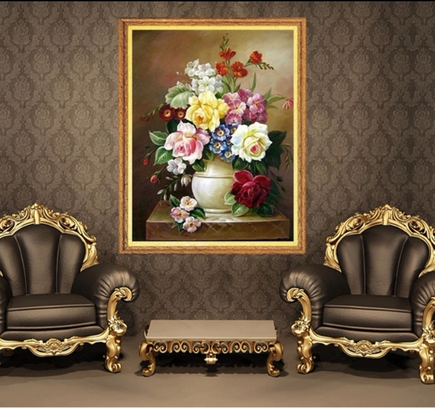 Full embroidered European cross stitch Silk thread small living room simple modern vase Rose cross stitch Bedroom peony flower