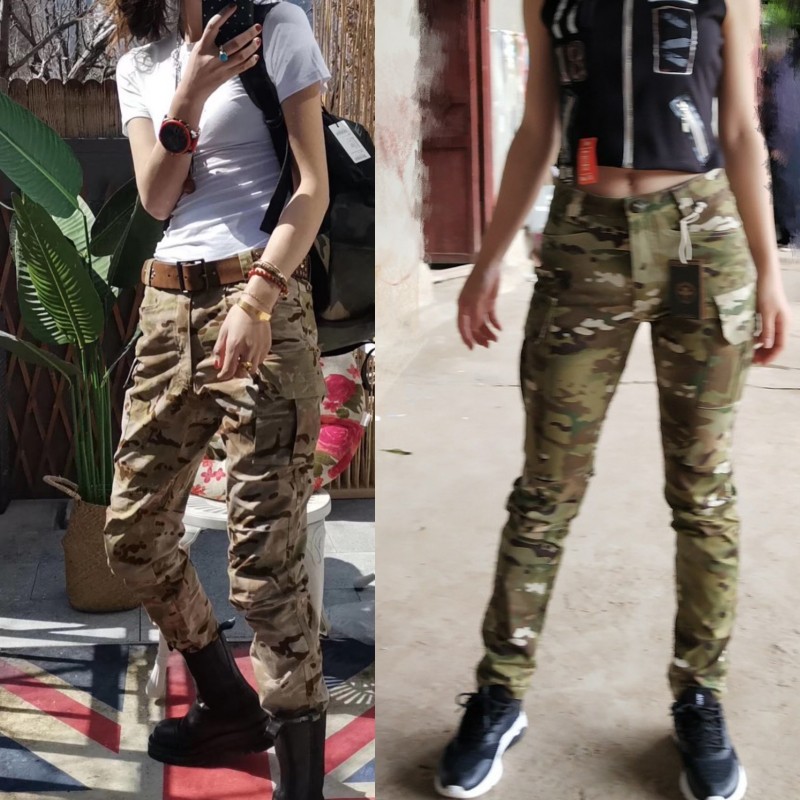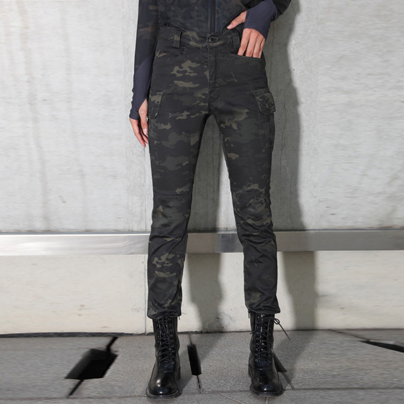 Chiefs spring and summer camouflage trousers women's slim-fit stretch thin army fans outdoor sports small feet casual pants CS tactical pants