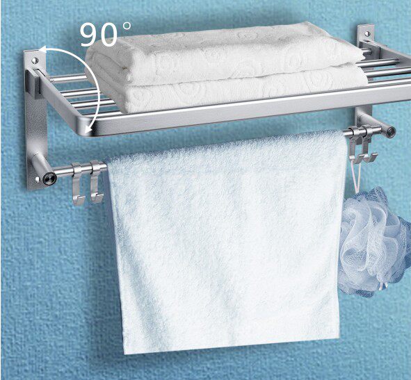 Silver dragon space aluminum movable towel rack Bath towel rack folding with hook single double-layer bathroom bathroom pendant never rust