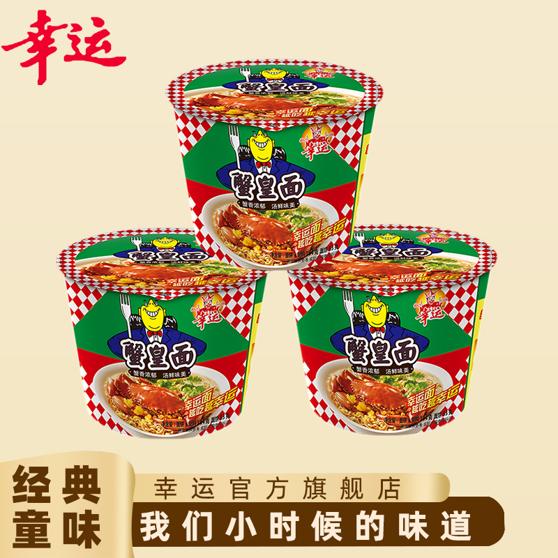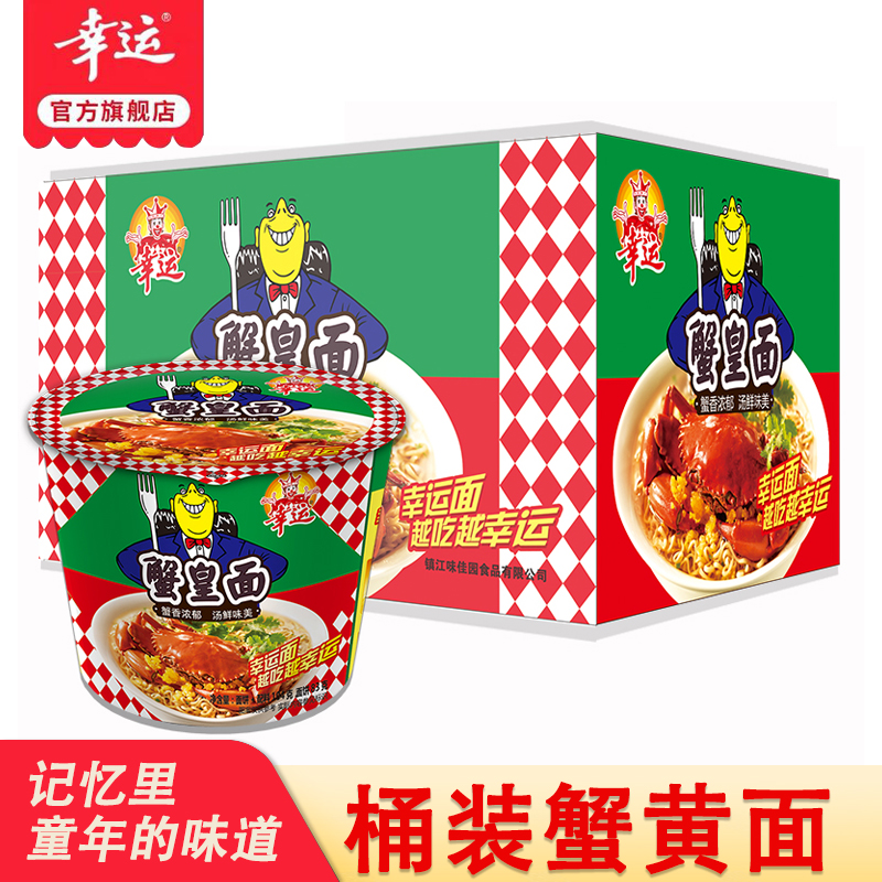 Lucky Instant Noodles Golden Bucket Chaoshan Crab King Noodles 104g*12 Buckets Wholesale Wholesale Bucket Packing with Egg Crab Yellow Noodles