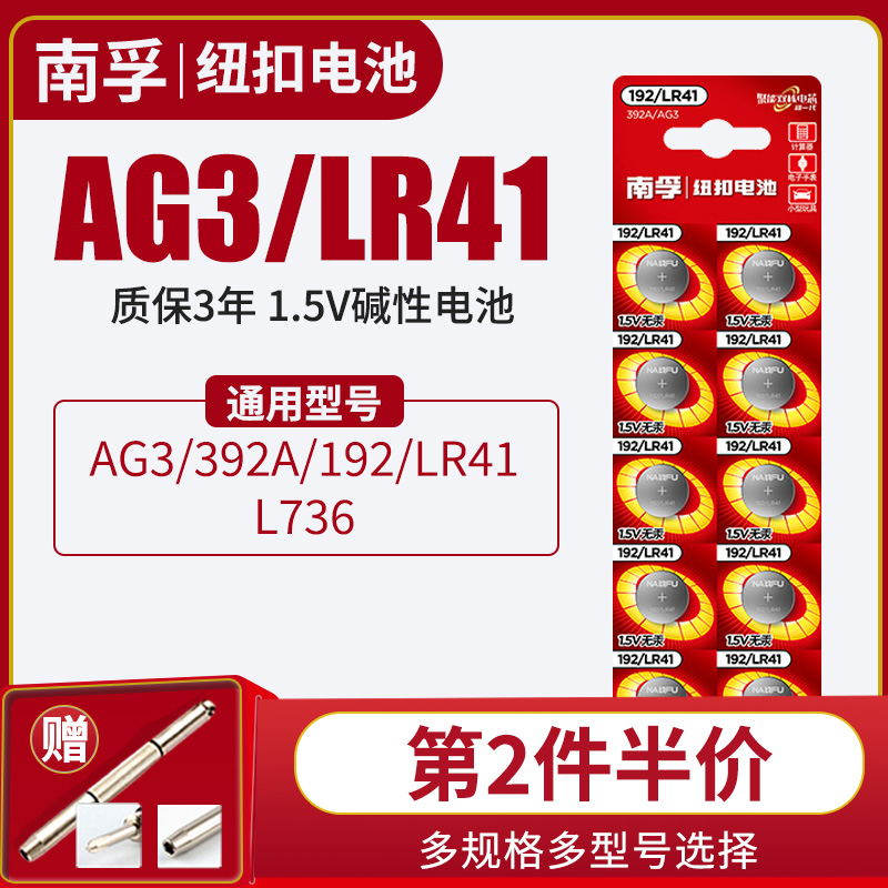 Nanfu battery 192 AG3 button BATTERY LR41 Watches 392A Toys AG3 Electronic Body Body Temperature Gun Thermometer L736 Small electronics 1 6VLED lamp up to model