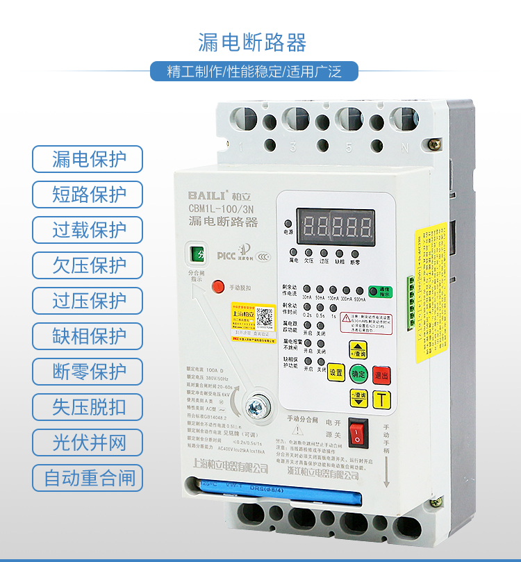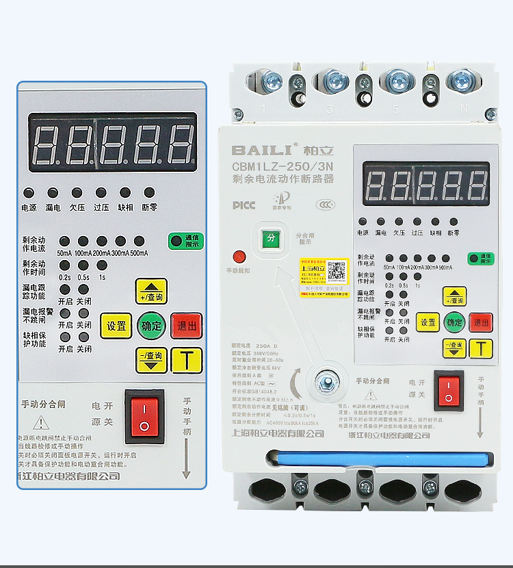 Intelligent photovoltaic 100A automatic reclosing three-phase 250A630A earth leakage residual current protector breaker