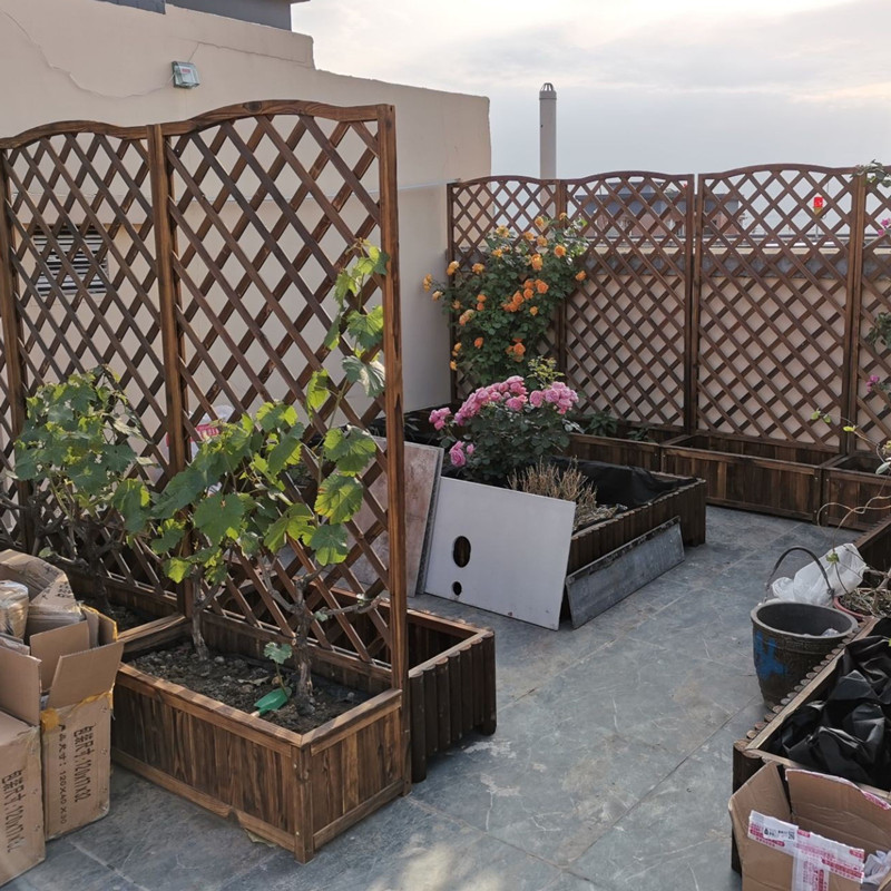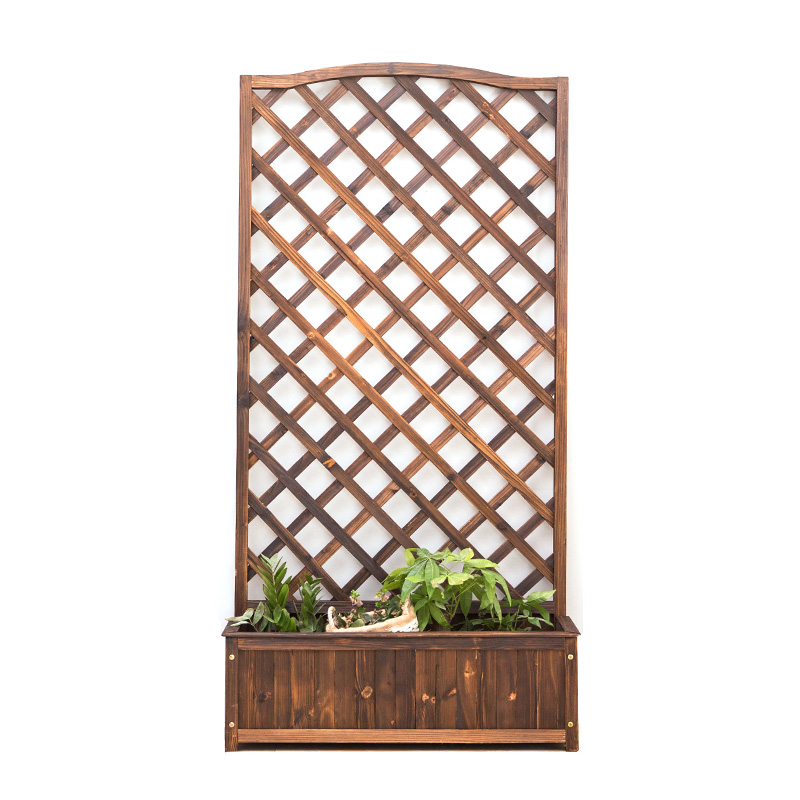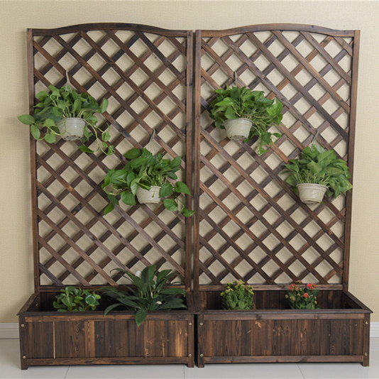 Carbonized wood flower pot rack outdoor grid climbing rattan flower shelf screen partition fence anti-corrosion wood fence planting flower box