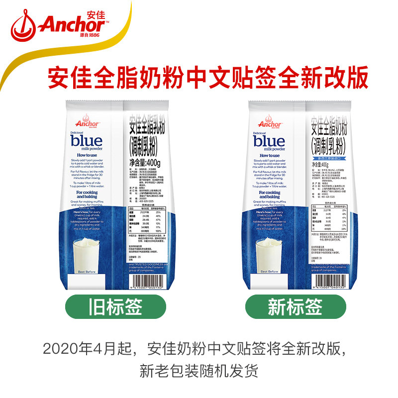 Anjia New Zealand imported whole milk powder adult adolescent students whole milk powder blended milk powder 400g *2 bags