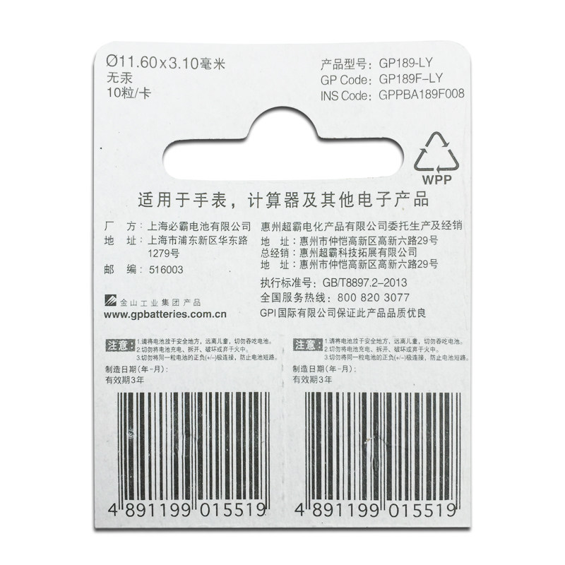 GP hyperbaric button Battery 189 LR54 AG10 LR1130 389 Universal 1 5V buckled battery 10 grain