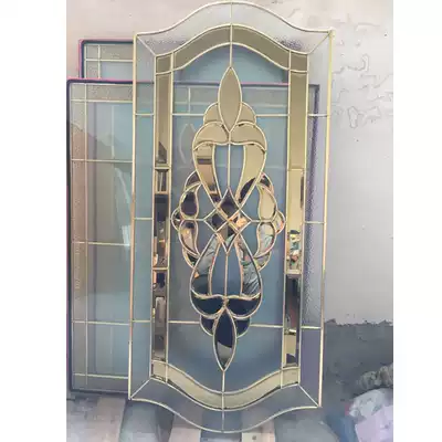 Solid Wood aluminum alloy doors and windows opaque hollow copper strip inlay glass door Art glass door core partition customized
