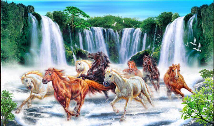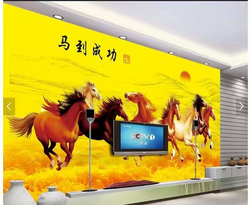 Wall ceramic tile porch living room TV sofa background wall mural art sculpture horse to success eight jun map customization